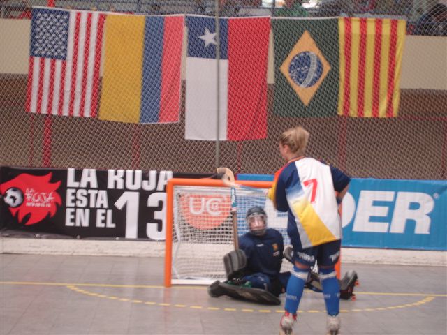 Les xilenes s'havien posat per davant amb dos gols de Francisca Puerta (min. 2 i 4) que han estat igualats per l'1 a 2 de La Cristina Barceló i el 2 a 2 de L'Emma Corominas abans d'arribar al descans. Ja a la segona part, la Pancha Puertas ha tornat a avançar el seu equip al minut 7, però 30 segons més tard Maria Rosa Tamburini ha fet el 3 a 3. A falta de 10 minuts la Cristina Barceló ha marcat el 4 a 3 que deixava el marcador favorable a la selecció catalana però en uns dos minuts finals fatídics la inefable Pancha ha marcat dos gols que han provocat el deliri entre el públic xilè que omplia el Gimnasio Olímpico de San Miguel.